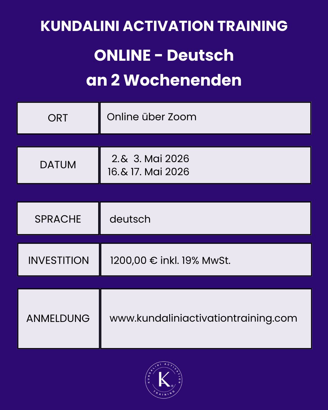 Formación Kundalini Activation Training 2-3 de mayo y 16-17 de mayo 2026